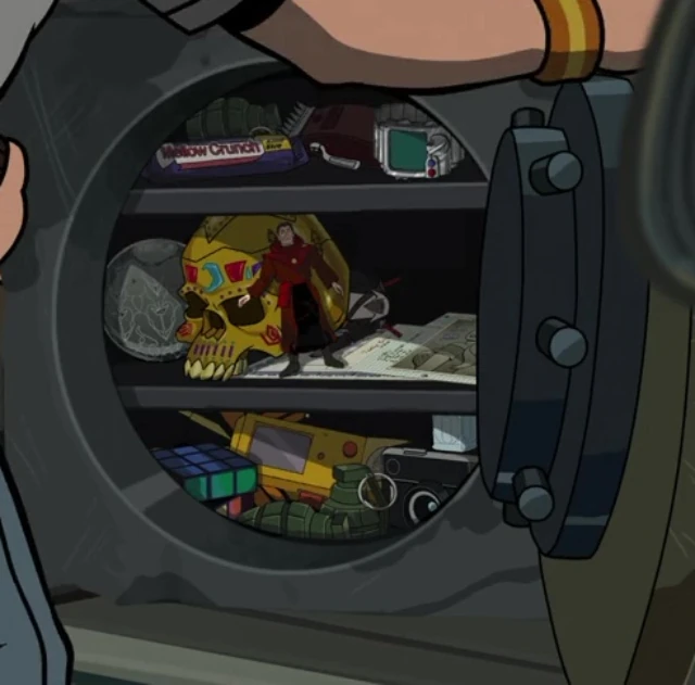 - The decorative skull that Dr. Orpheus uses for recording voice messages, first seen in season 1's Eeney, Meeney, Miney... Magic!
